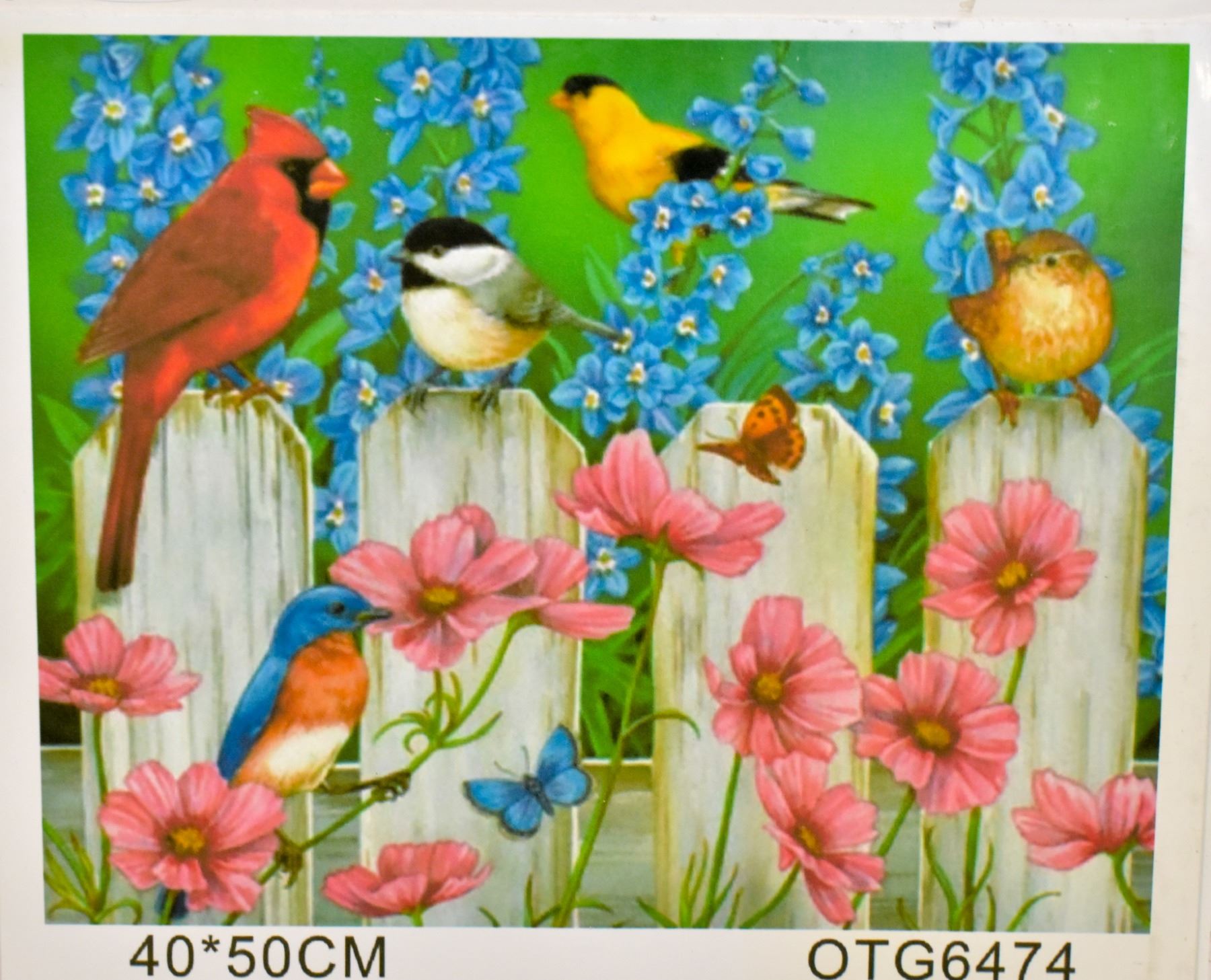 CANVAS, BIRDS ON FENCE, PAINT BRUSHES AND ACRYLIC PAINT INCLUDED, 20 X 16", ALL PARTS AND PIECES SEALED, ORIGINAL BOX, AMZ SES