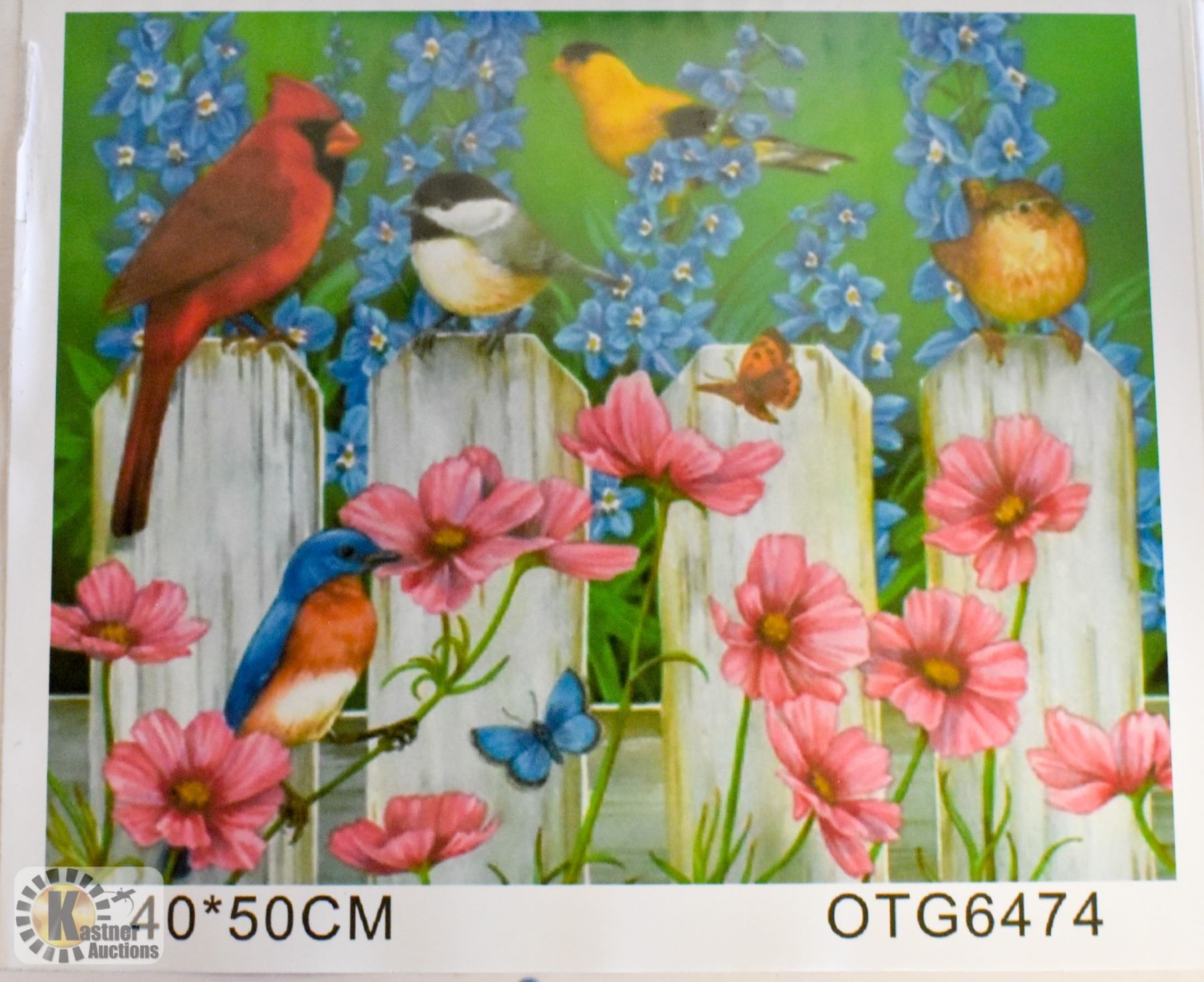 CANVAS, BIRDS ON FENCE, PAINT BRUSHES AND ACRYLIC PAINT INCLUDED, 20 X 16", ALL PARTS AND PIECES SEALED, ORIGINAL BOX, AMZ SES