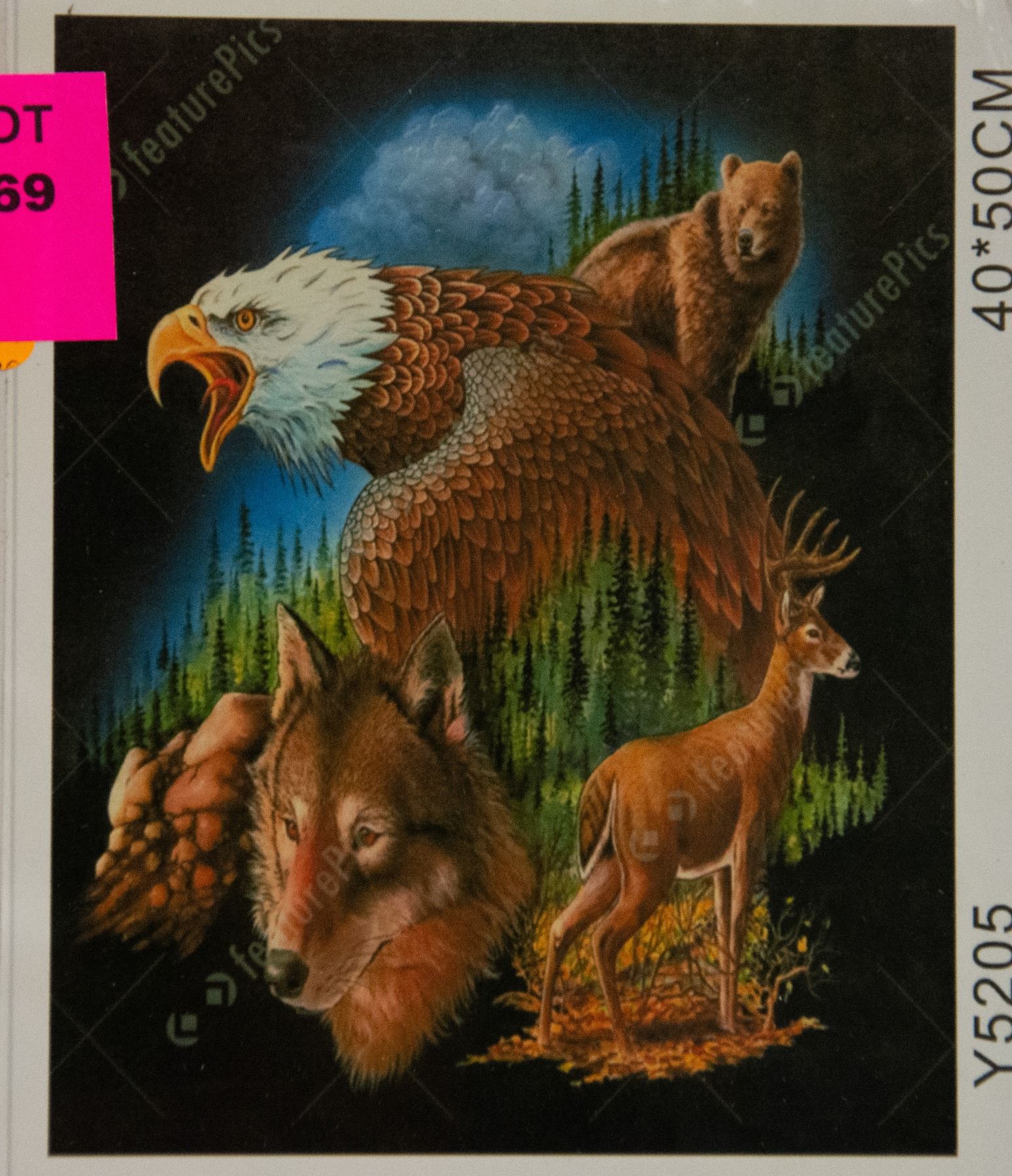 CANVAS, WILDLIFE SCENE WITH EAGLE/BEAR/WOLF/DEER , PAINT BRUSHES AND ACRYLIC PAINT INCLUDED, 20 X 16", ALL PARTS AND PIECES SEALED, ORIGINAL BOX, AMZ SES