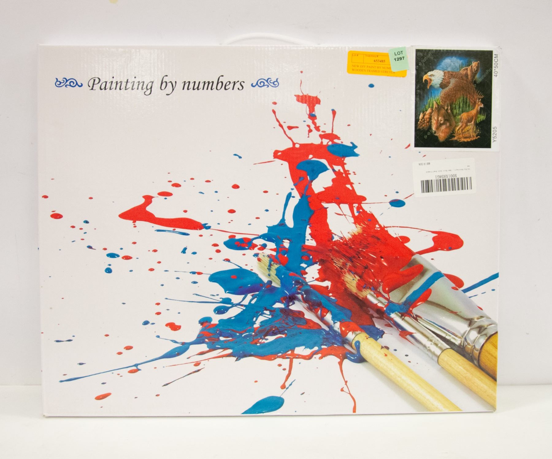 CANVAS, WILDLIFE SCENE WITH EAGLE/BEAR/WOLF/DEER , PAINT BRUSHES AND ACRYLIC PAINT INCLUDED, 20 X 16", ALL PARTS AND PIECES SEALED, ORIGINAL BOX, AMZ SES**ALL ITEMS MUST BE REMOVED BY 5PM SATURDAY, OCTOBER 1ST, 2022. ALL REMAINING ITEMS WILL BE SUBJECT TO A $6.00 PER DAY STORAGE CHARGE. ANY ITEMS REMAINING AFTER MONDAY, OCTOBER 15, 2022 WILL BE CONSIDERED FORFEITED. NO REFUNDS WILL BE ISSUED FOR FORFEITED ITEMS. TO SCHEDULE A PICK UP APPOINTMENT CLICK HERE