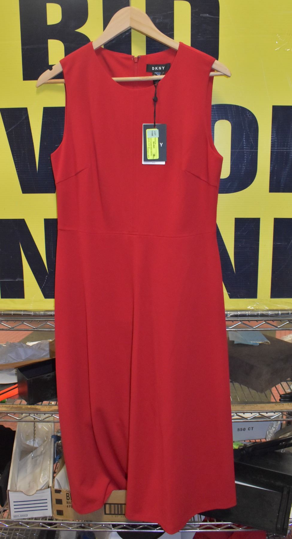 NEW DKNY LADIES RED DRESS, BACK ZIPPER, SIZE 10