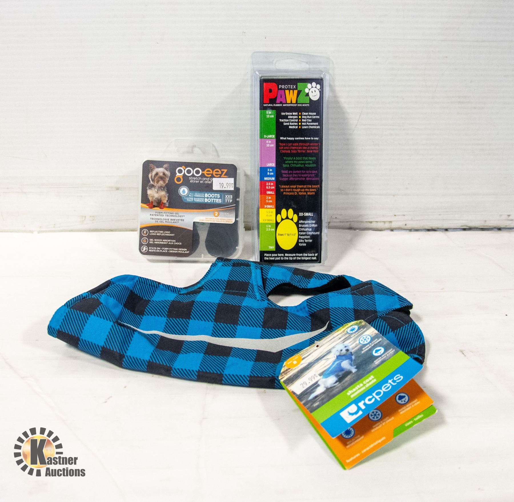 2 PACKS NEW RC PETS SHASTA REFLECTIVE WINTER DOG COAT SIZE 8 AND PAWZ RUBBER BOOTS XXS X2