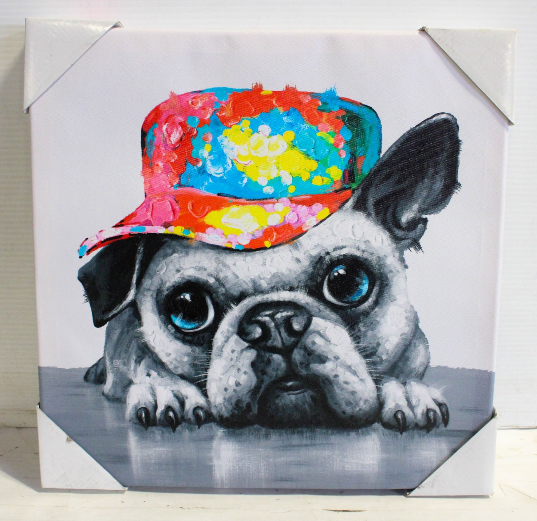 NEW DOG WITH HAT CANVAS PRINT 16" X 16"