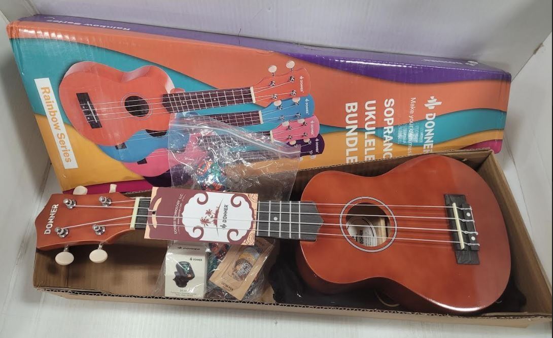NEW DONNER SOPRANO UKULELE BUNDLE - REDISH BROWN