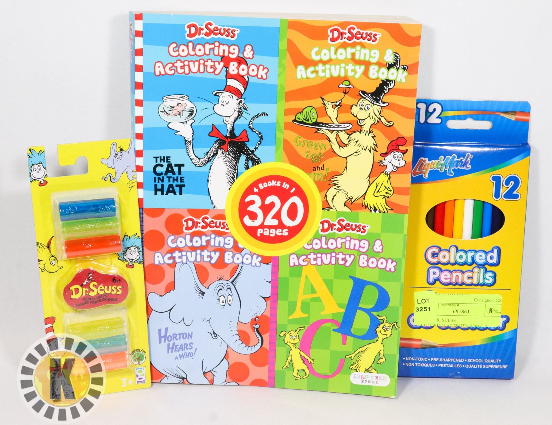 ONE. WITH 6PC DR. SUESS PENCIL GRIPS AND PENCIL CRAYONS