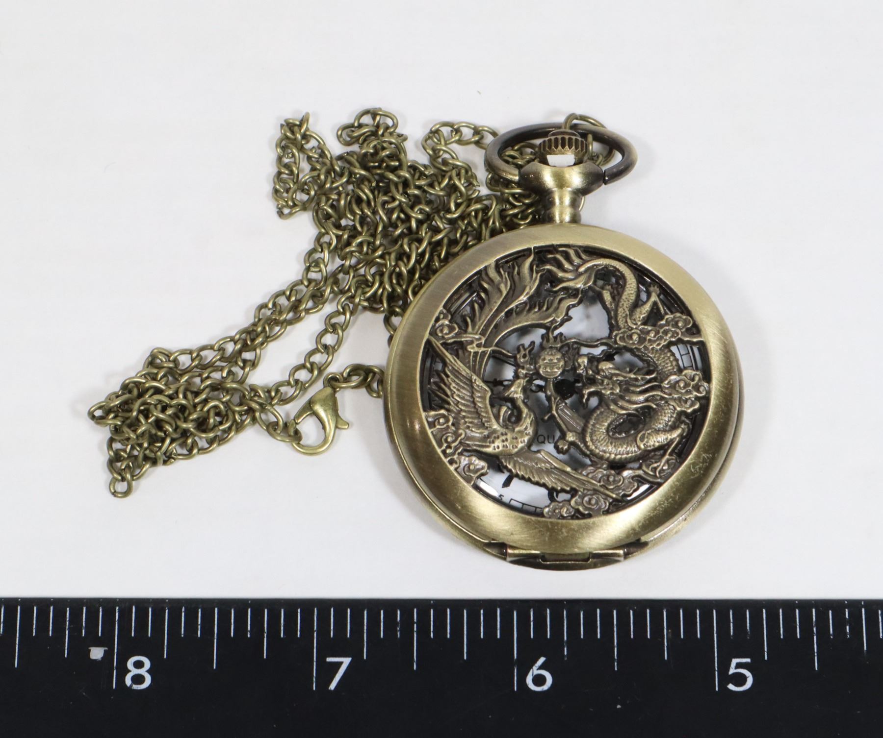NEW DRAGON AND CRANE POCKET WATCH AND CHAIN