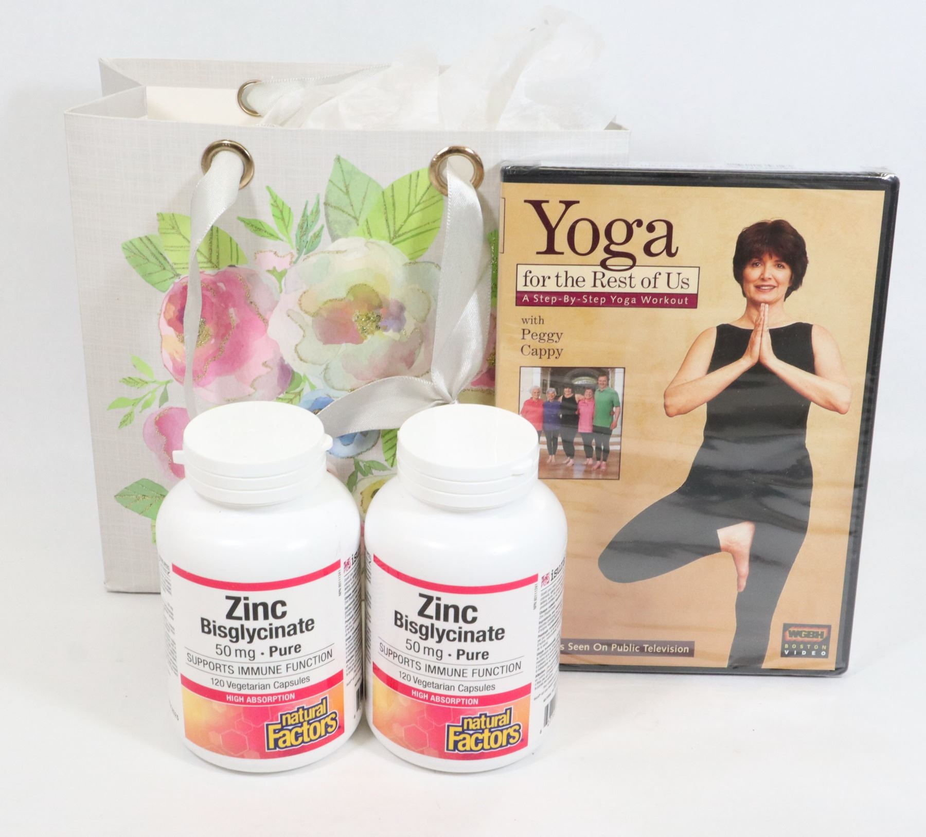 A STEP-BY-STEP YOGA WORK OUT. SOLD WITH 2 NEW BOTTLES OF ZINC BISGLYCINATE 50MG PURE. 120 VEGETARIAN CAPSULES. EXP: DEC 2025