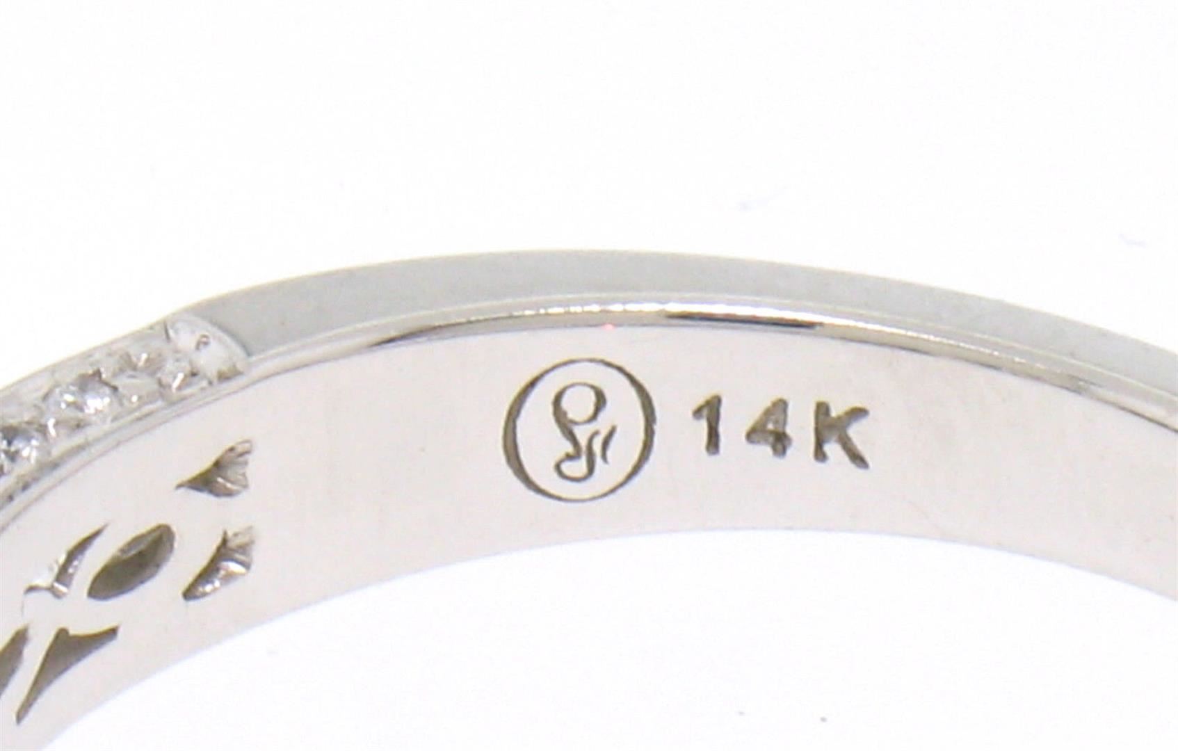 A new solid 14k white gold engagement ring, with 3 round brilliant cut natural diamonds (0.80ctw), and 10 natural diamonds (0.65ctw), with numerous diamonds (0.40ctw).The ring is size 7, weighs a total of 5.30 grams, and measures 4.60mm wide.