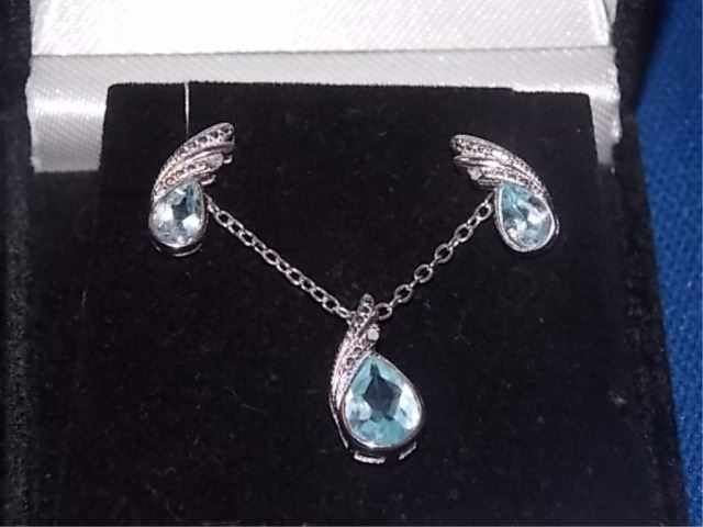NEW EARRINGS & NECKLACE SET - NEW 2.5CT PEAR FACETED BLUE TOPAZ & DIAMONDS IN STERLING SILVER SETTING - INCLUDES $425 CERTIFICATE