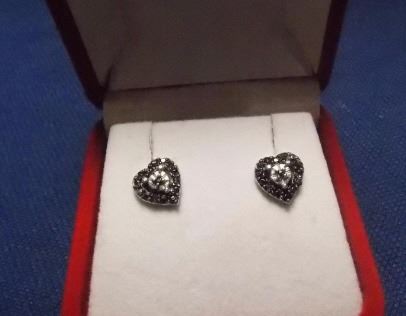 NEW EARRINGS - NEW BLACK DIAMOND EARRINGS - HEART-SHAPE CLUSTER DESIGN - STERLING SILVER SETTING - POST & BUTTERFLY - RETAIL ~$550