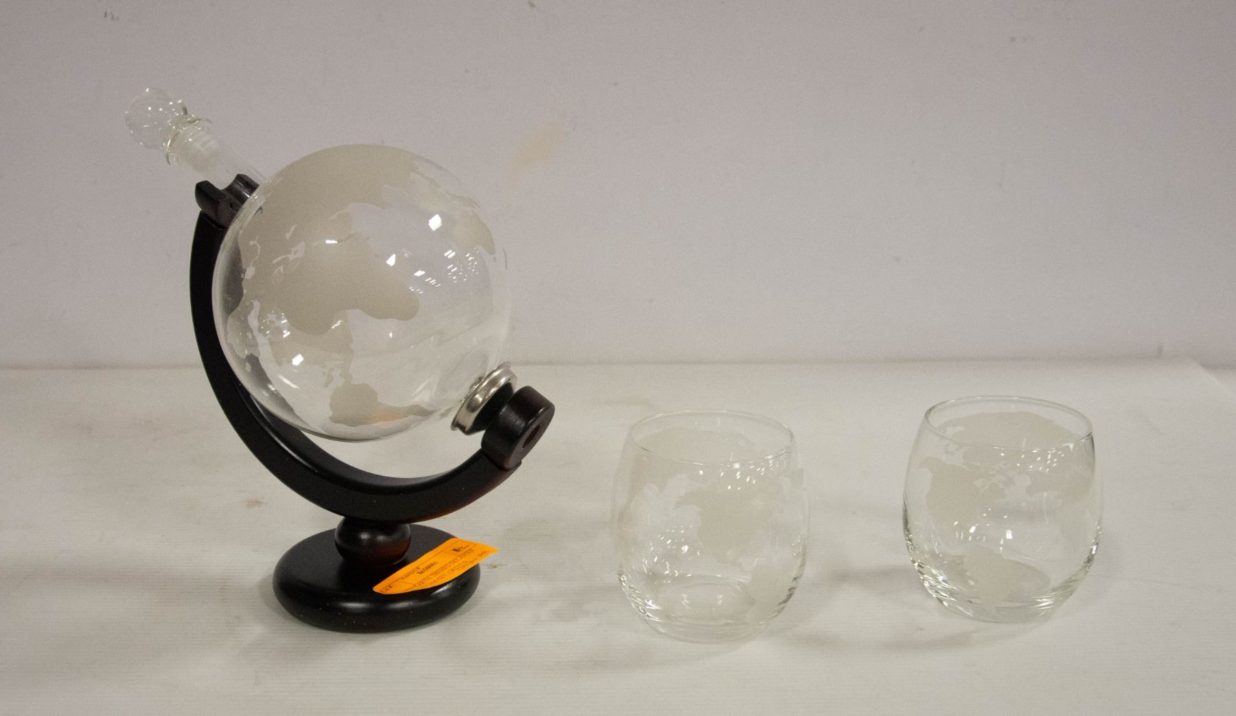 NEW EARTH THEMED DECANTER AND GLASS SET, CRYSTAL