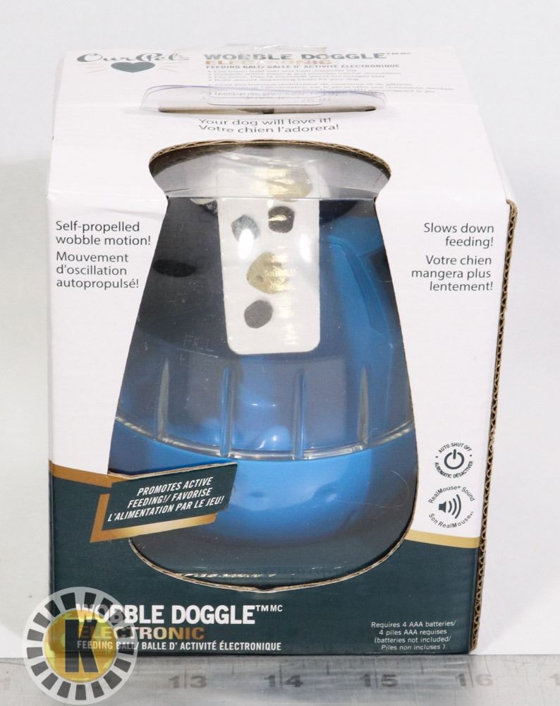 DOGGLE HAS AUTO SHUT OFF. REAL MOUSE SOUND. REQUIRES 4AAA BATTERIES NOT INCLUDED