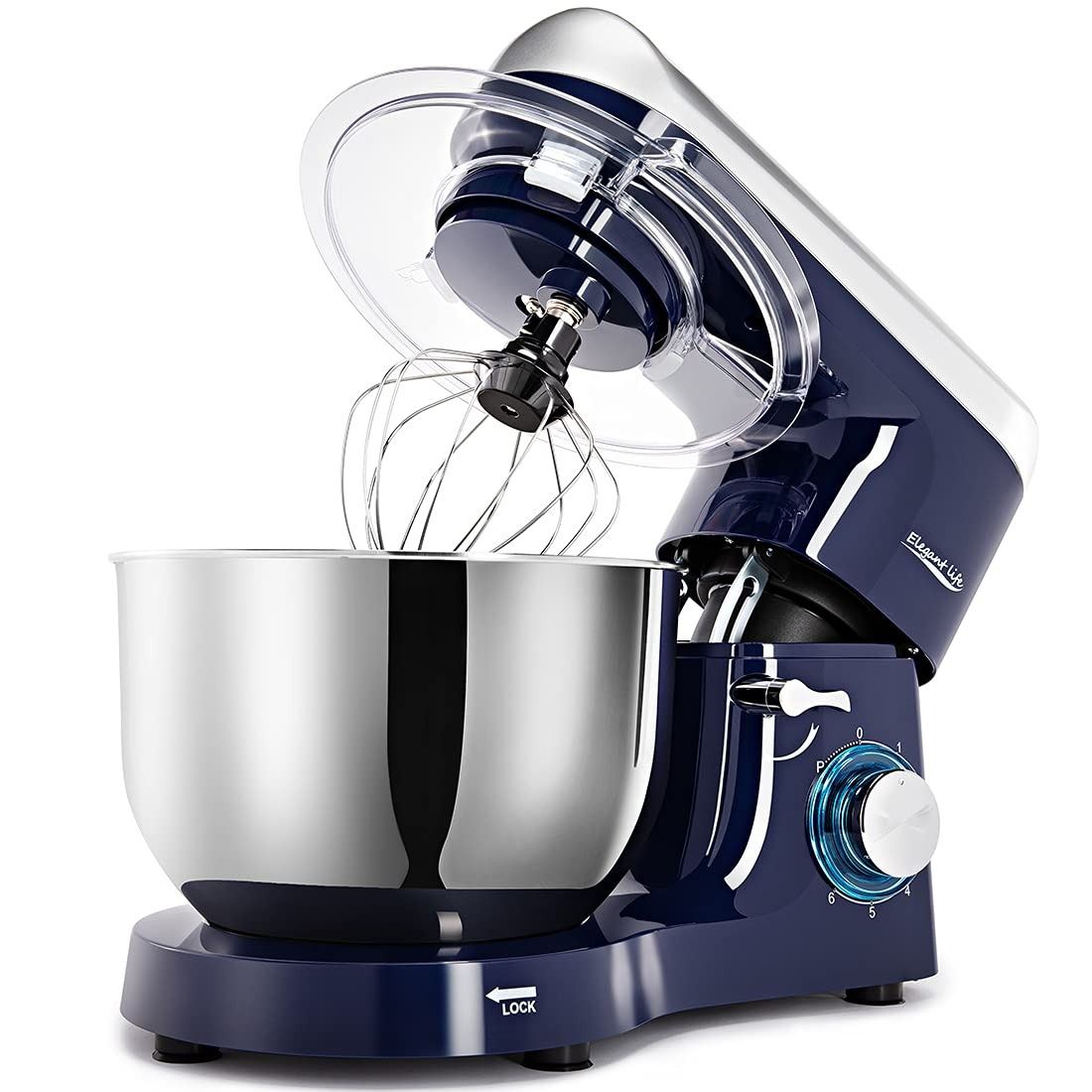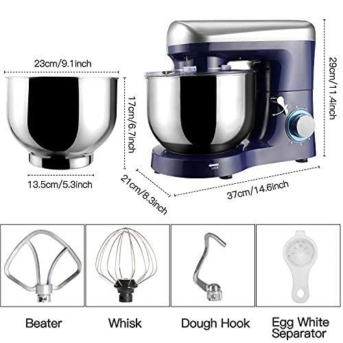 6 SPEEDS, REMOVABLE STAINLESS STEEL MIXING BOWL, BEATER, DOUGH HOOK, WHISK, BOWL COVER, BLUE AND SILVER, TESTED, ALL PARTS CONFIRMED, INSTRUCTION MANUAL INCLUDED, AMZ SES