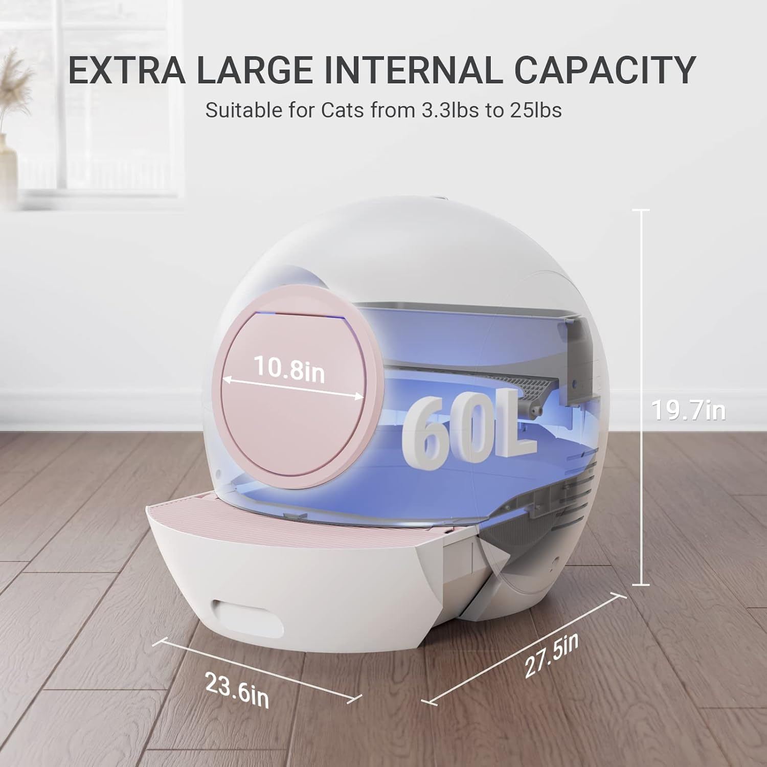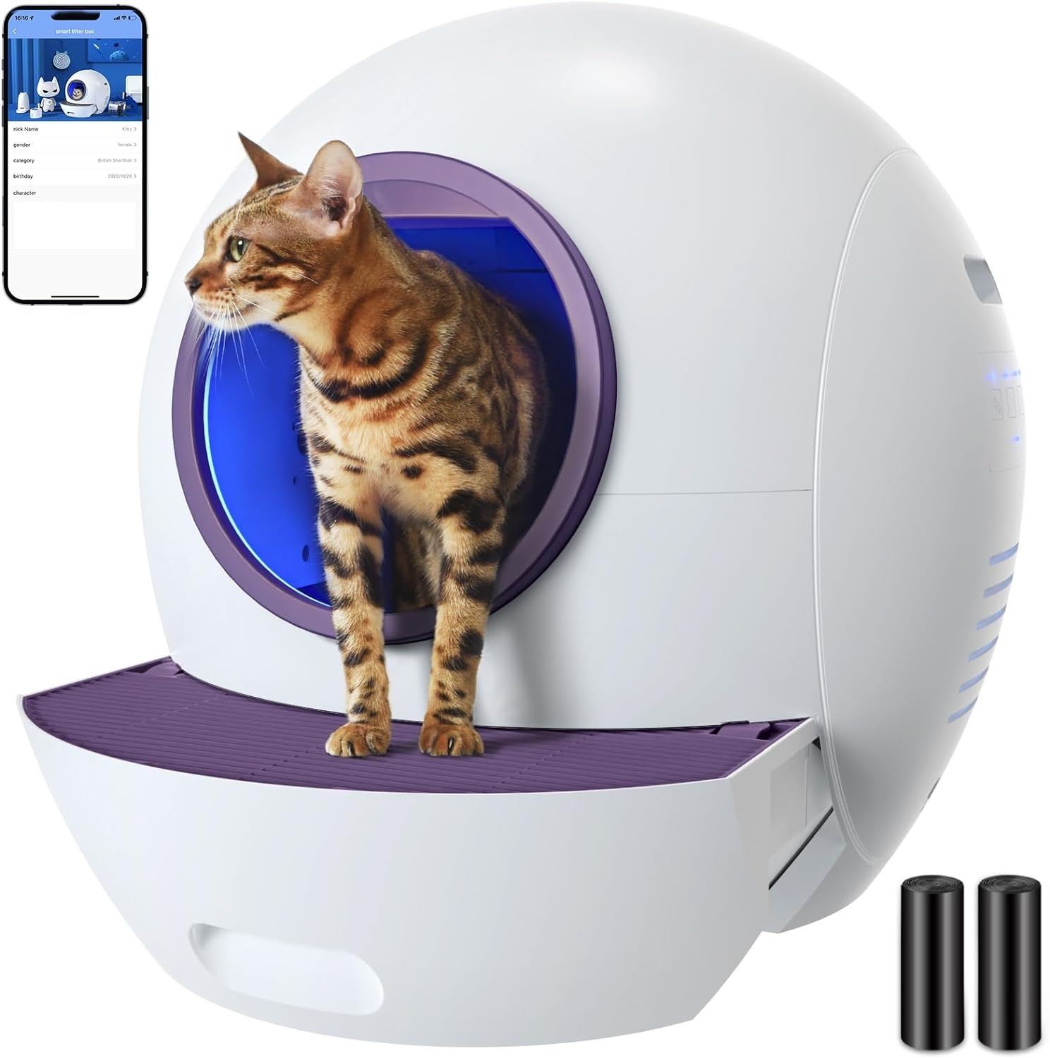AUTOMATIC CAT LITTER BOX, APP CONTROL, 60L LARGE SMART CAT LITTER BOX FOR MULTIPLE CATS, ODORLESS DESIGN, HIGH PRECISION GRAVITY DETECTION PREVENTS YOUR PETS FROM BEING INJURED OR PINCHED, COMPATIBLE WITH MANY TYPES OF LITTER- CLUMPING IS RECOMMENDED. PURPLE AND WHITE, MSRP $799.99 AMZ SES **ALL ITEMS MUST BE REMOVED BY 5PM SATURDAY, MARCH 2ND 2024. ALL REMAINING ITEMS WILL BE SUBJECT TO A $6.00 PER DAY STORAGE CHARGE. ANY ITEMS REMAINING AFTER MONDAY, MARCH 18TH, 2023 WILL BE CONSIDERED FORFEITED. NO REFUNDS WILL BE ISSUED FOR FORFEITED ITEMS. TO SCHEDULE A PICK UP APPOINTMENT CLICK HERE