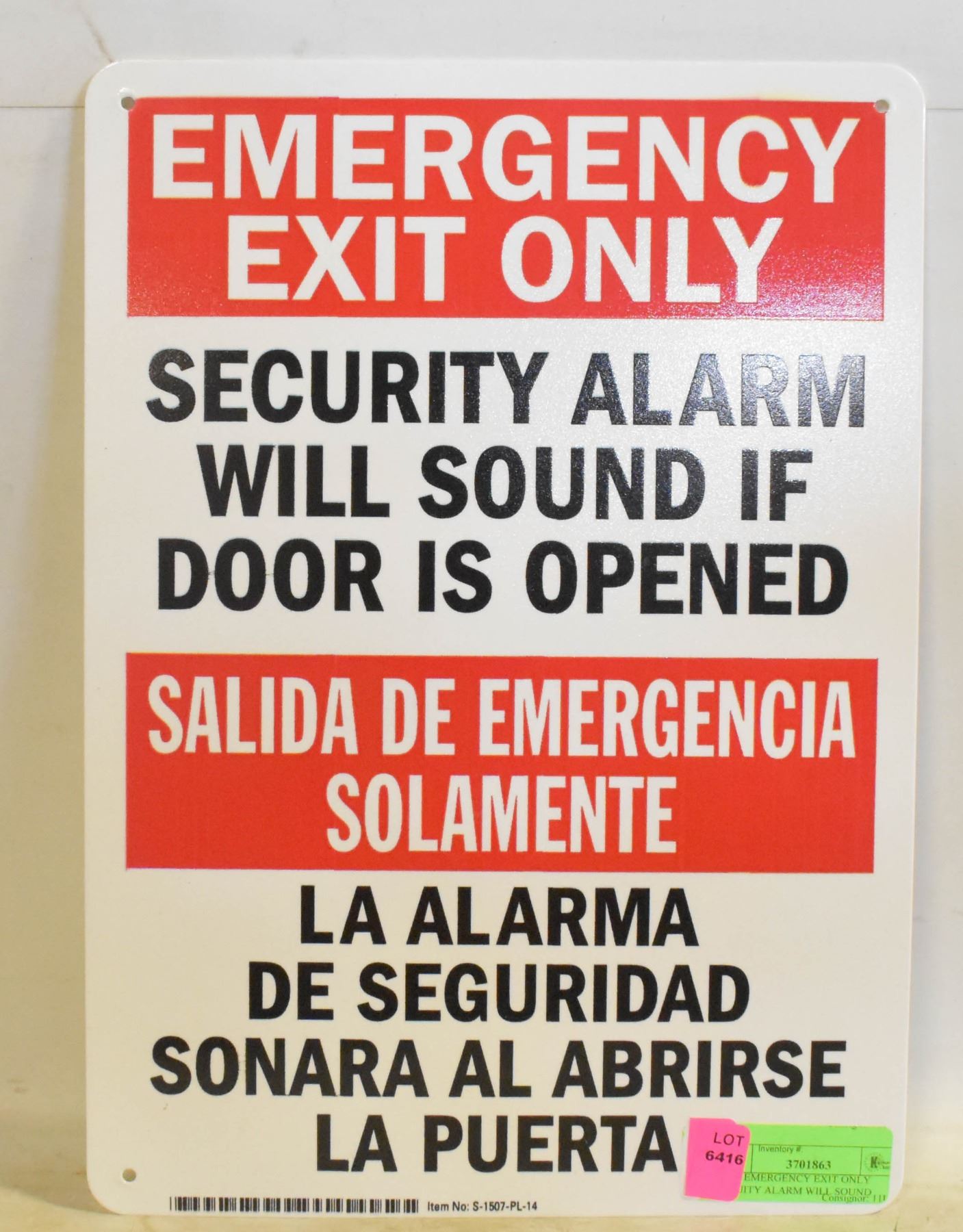 NEW EMERGENCY EXIT ONLY SECUITY ALARM WILL SOUND