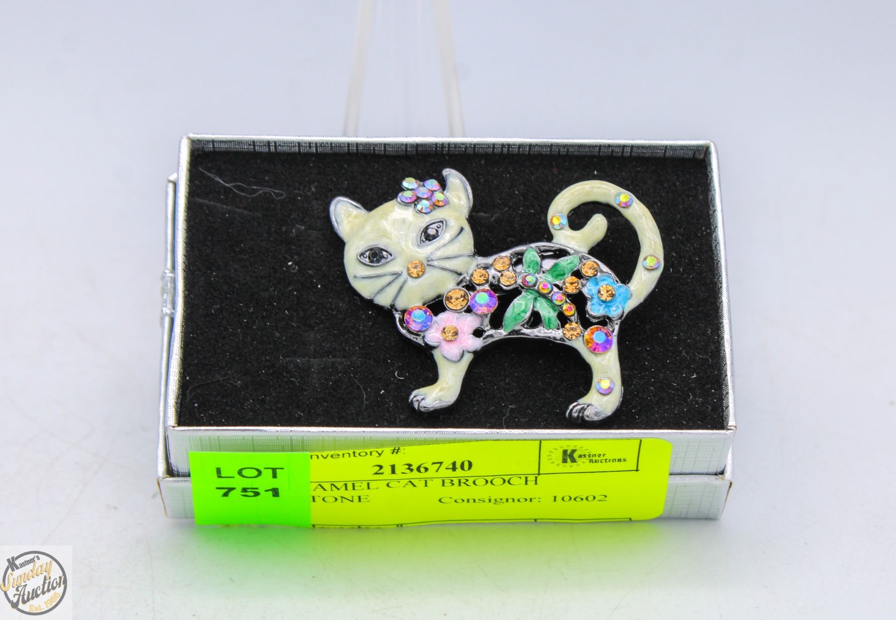 NEW ENAMEL CAT BROOCH RHINESTONE
