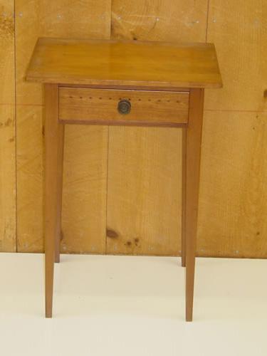 NEW ENGLAND CHERRY HEPPLEWHITE 1 DRAWER STAND W/ OVERHANGING TOP & THIN SQUARE TAPERED LEGS (27 3/4" T X 16 1/4" W X 14 1/4" D; TOP = 19 3/4" W X 15 1/2" D) - REPAIRS & IMPERFECTIONS;