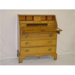 NEW ENGLAND CHIPPENDALE MAPLE SLANT FRONT DESK W/ FULL INTERIOR W/ ROSETTE CARVINGS