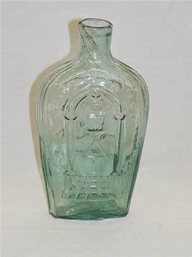 NEW ENGLAND GLASS CO. EAGLE MASONIC PINT FLASK GIV-27 - DEEP AQUAMARINE;