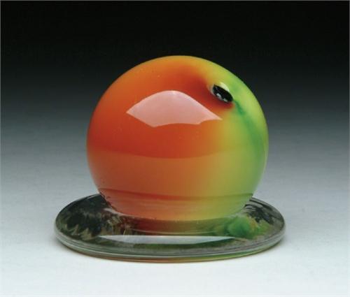 NEW ENGLAND GLASS CO. PAPERWEIGHT. Fun New England Glass Co. paperweight features a hollow blown apple resting on a glass wafer. SIZE: 3 in. l. CONDITION: Very good to excellent. 5-60281