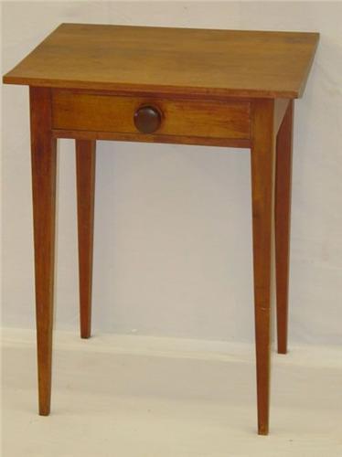 NEW ENGLAND HEPPLEWHITE CHERRY & BIRCH 1 DRAWER STAND IN RED WASH (27 1/2" T X 21" W X 18 3/4" D) - WEAR & IMPERFECTIONS
