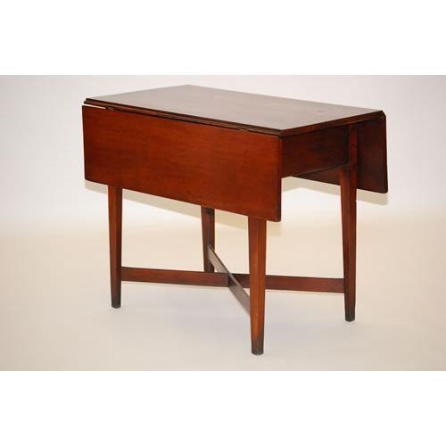 NEW ENGLAND HEPPLEWHITE PEMBROKE TABLE-CHERRY TABLE W/ SQUARE DROP LEAVES, SQUARE TAPERED LEGS & CROSSED LEG STRETCHERS (28 1/2" T X 36" L X 20 1/4" W) - WEAR, SMALL LOSSES, IMPERFECTIONS