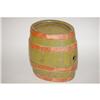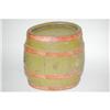 NEW ENGLAND PAINT DECORATED FARMER'S CANTEEN - 19TH CENT. BANDED OAK FARMER'S CANTEEN IN GREEN PAINT W/ 4 BITTERSWEET PAINTED TIN BANDS-MARKED HADL191416 EMLEK ON RIM EDGE (8 3/4" L) - WEAR, LOOSE BANDS, IMPERFECTIONS