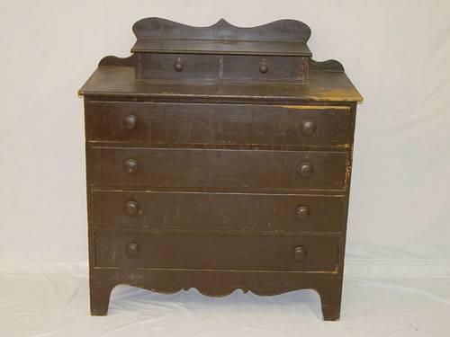 NEW ENGLAND PAINTED 19TH CENT. DECK TOP 2 OVER 4 DRAWER CHEST ON SHAPED BRACKET BASE W/ BACK SPLASH (FROM VT) - IMPERFECTIONS & WEAR;