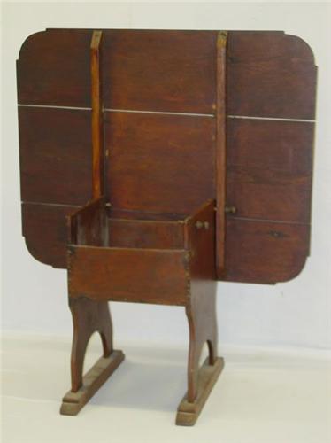 NEW ENGLAND PINE & MAPLE SHOE FOOT HUTCH TABLE W/ SHAPED TOP (28 1/2" T X 46" W X 37 1/2" D) - REPAIRS & IMPERFECTIONS