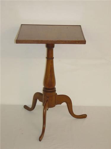 NEW ENGLAND QUEEN ANNE CHERRY CANDLESTAND W/ SQUARE TOP, TURNED SHAFT, CABRIOLE LEGS & DUTCH FEET (25" T X 16" SQUARE TOP) - REPAIRS & IMPERFECTIONS;