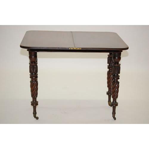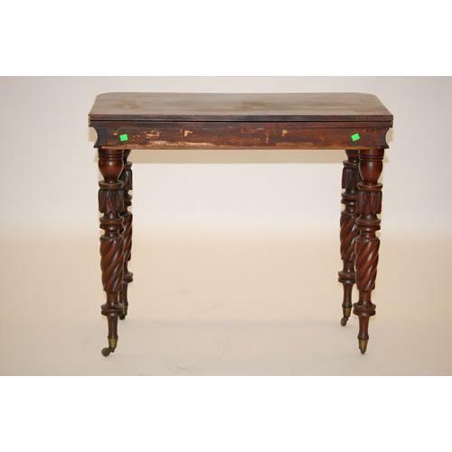 NEW ENGLAND SHERATON CARD TABLE - MAHOGANY TABLE W/ SHAPED & MOLDED TOP, COVE MOLDED SKIRT & ACANTHUS CARVED & ROPE TURNED LEGS W/ BRASS CASTORS (29 1/2" T X 35" W X 18 1/4" D) - WEAR, REPAIRS, IMPERFECTIONS