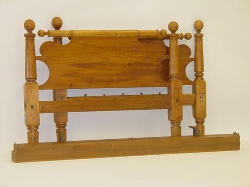 NEW ENGLAND SHERATON MAPLE 4 POST CANNONBALL BED W/ TURNED BLANKET RAILS & SCROLLED PINE HEAD & FOOTBOARDS (43" T X 52" W X 82 1/2" L) - WEAR, DAMAGE, REPLACEMENTS, IMPERFECTIONS
