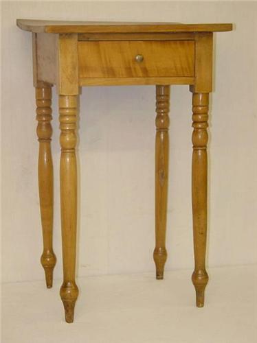 NEW ENGLAND SHERATON MAPLE & CHERRY 1 DRAWER STAND W/ TURNED LEGS - IMPERFECTIONS;