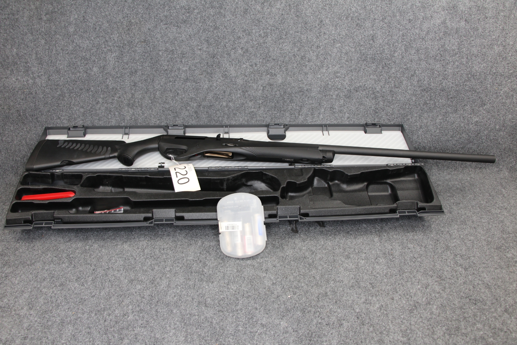 Not a mark on this gun. Comes complete with Benelli case and choke tubes. Adjustable comb. 5 chokes