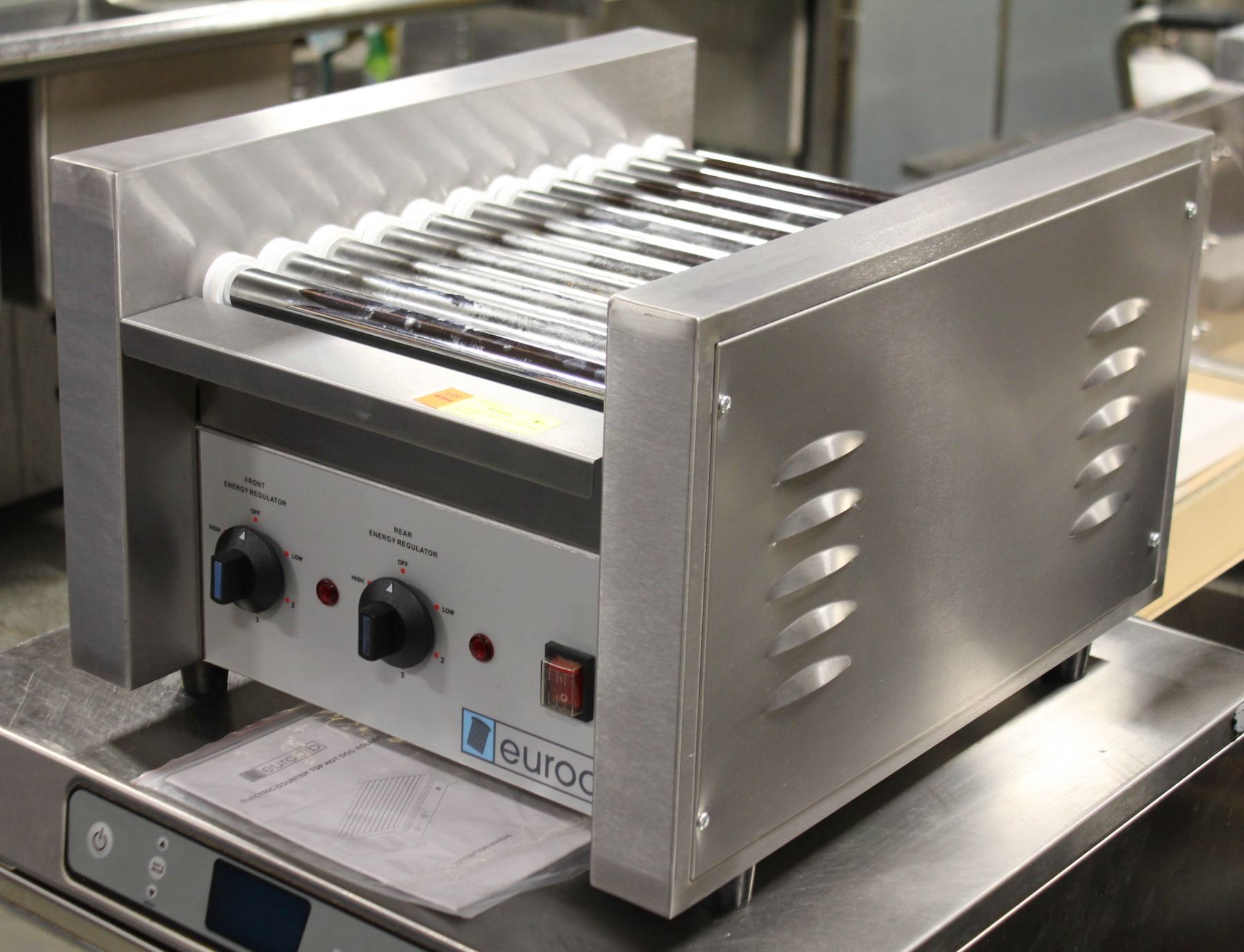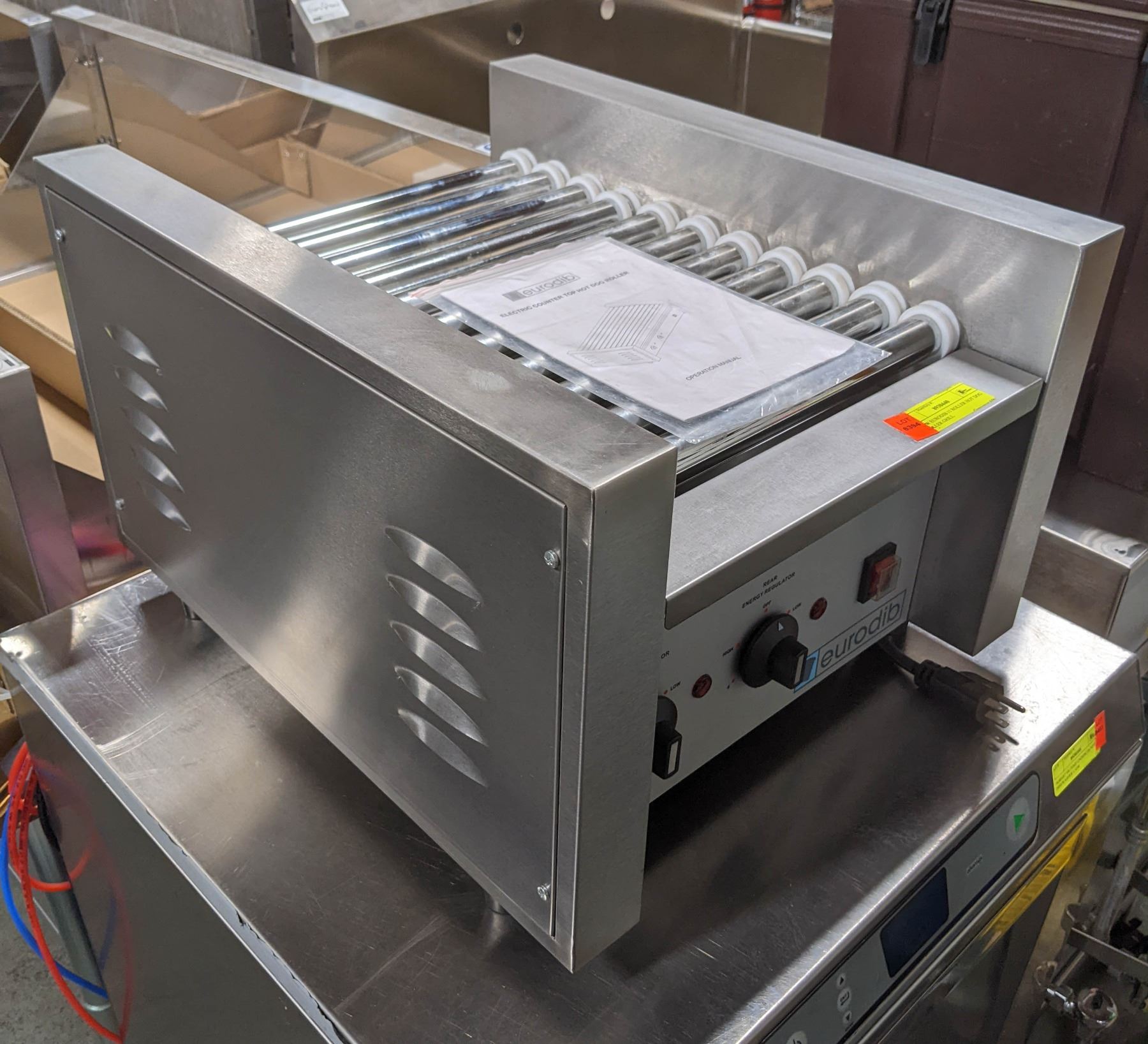 20 HOT DOG CAPACITY. MODEL: SFE01600. 120V, SINGLE PHASE, 1.21KW. 17" X 20.5" X 13"
