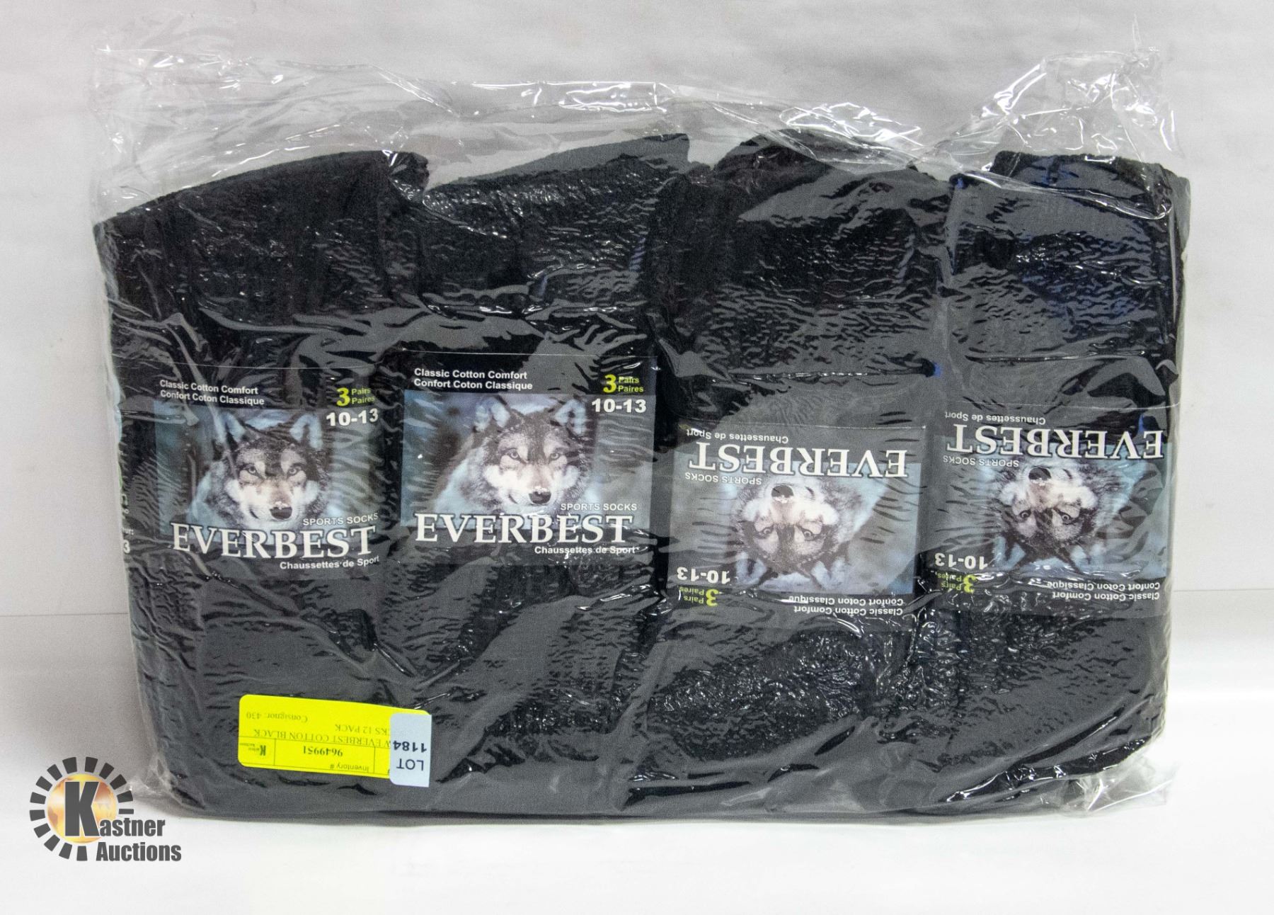 NEW EVERBEST COTTON BLACK SOCKS 12 PACK SZ 10-13