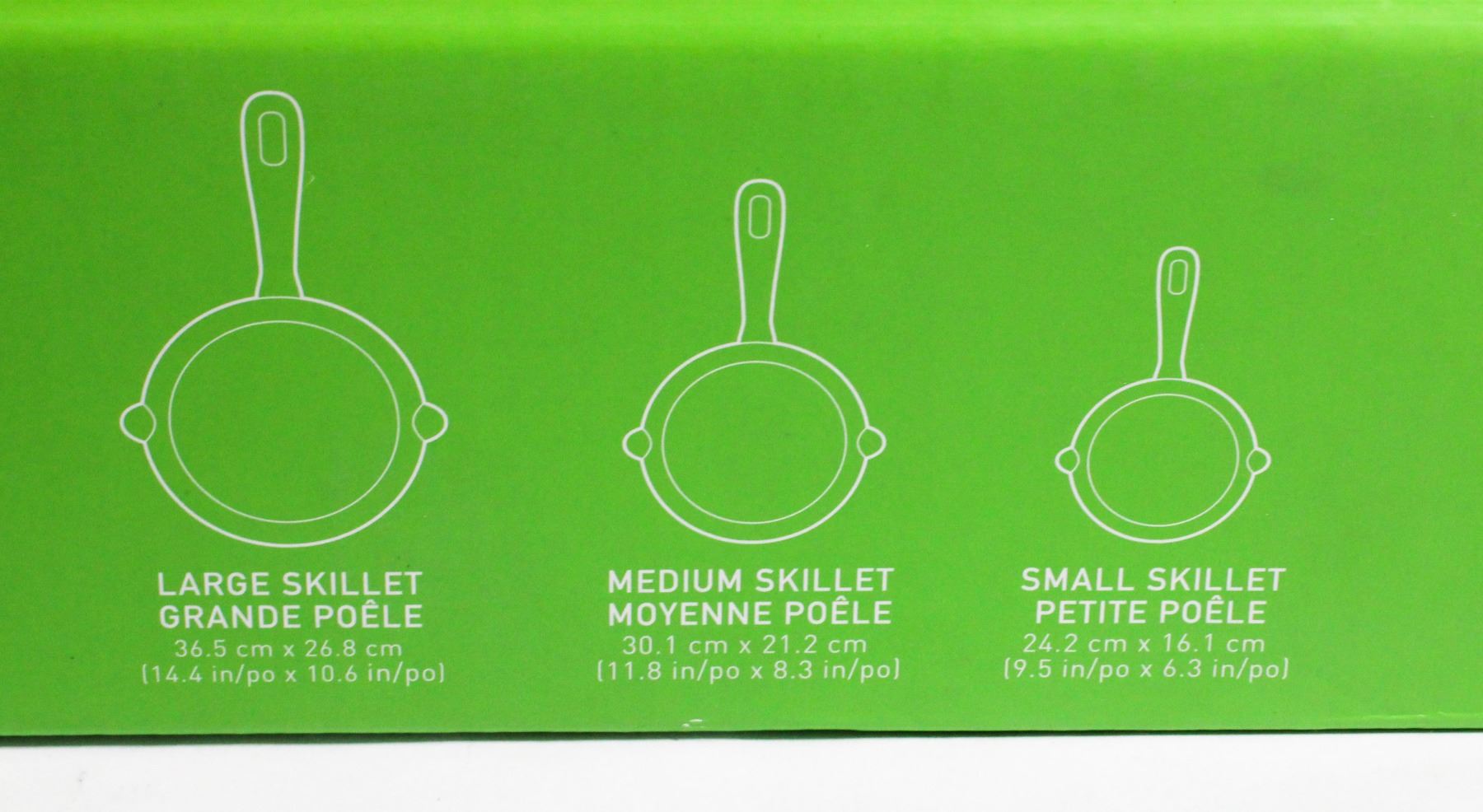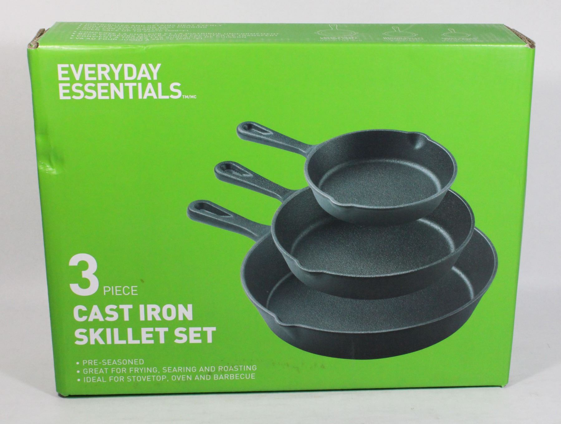 NEW EVERYDAY ESSENTIALS 3PC CAST IRON SKILLET SET