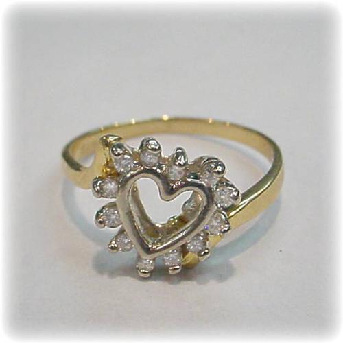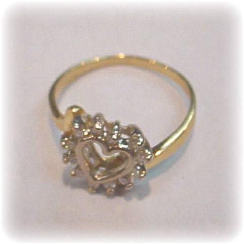 GENUINE DIAMOND SET IN A HEART OF 14 KARAT YELLOW GOLD, CREATE THIS FABULOUS RING. WE WILL SIZE THIS RING FOR YOU AT NO EXTRA CHARGE. THIS IS A VERY UNIQUE AND SPECIAL RING. <p> Our Gold Factory recently purchased the entire inventory from a Jewelry Firm that went out of business. We were able to purchase these items at a huge savings, which we now pass on to you! This is one of many of our one of a kind items. <p> Please note: our merchandise is guaranteed 100% to your satisfaction. If you DON'T LOVE this item, simply return it for a complete refund of your purchase price. Our feedback is 100% positive, so you can shop with confidence, knowing that your satisfaction is our primary concern. <p> *
