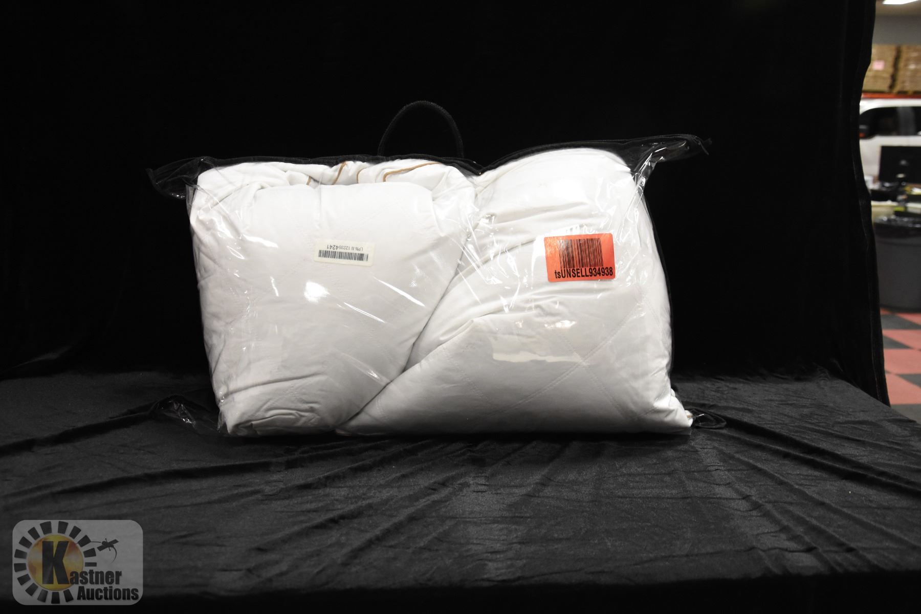 SET OF 2 ALL GOOSE DOWN/FEATHER FILLED PILLOWS, APPROX. 18" X 28" X 2", FILL WEIGHT 40 OZ, HYPOALLERGENIC, WHITE WITH BROWN EDGING