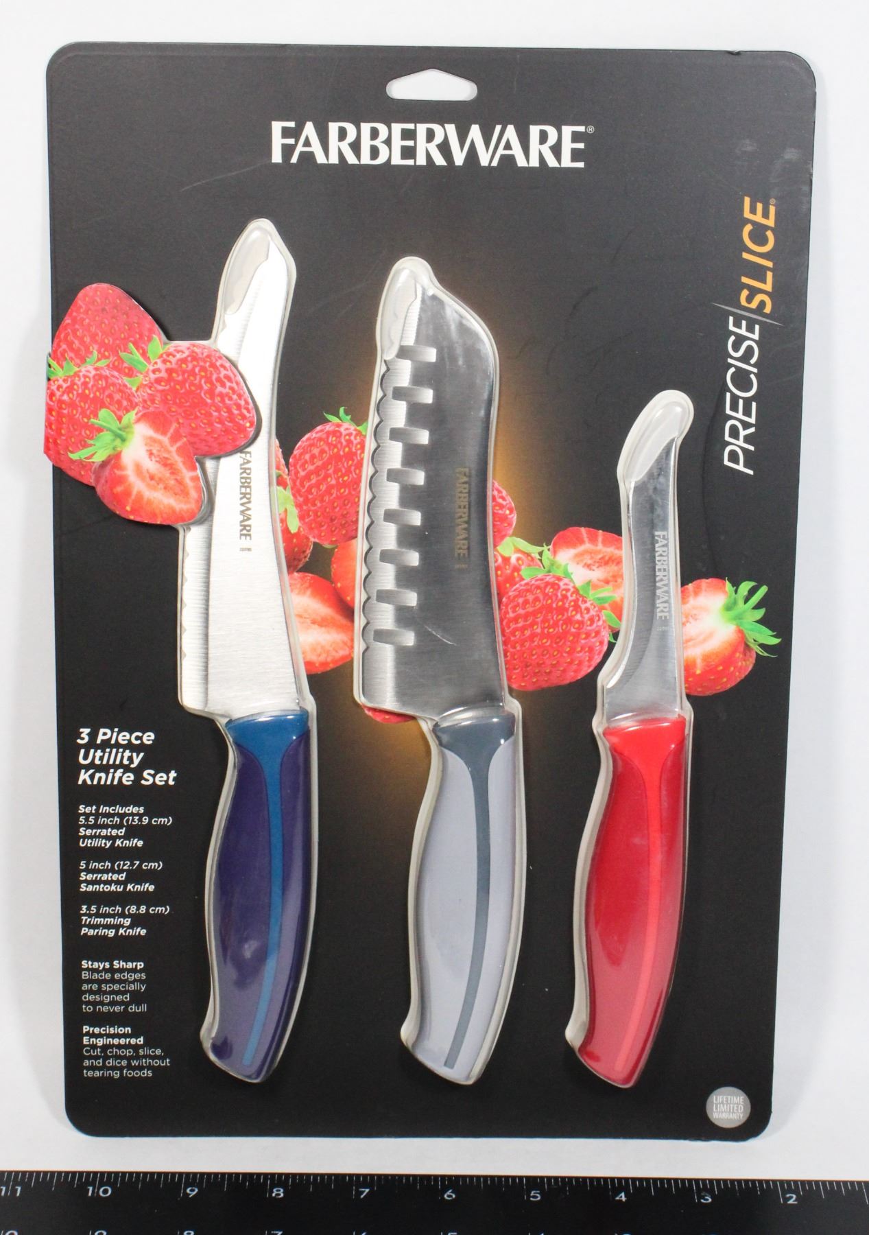 SERRATED UTILITY KNIFE, SERRATED SANTOKU KNIFE, TRIMMING PARING KNIFE