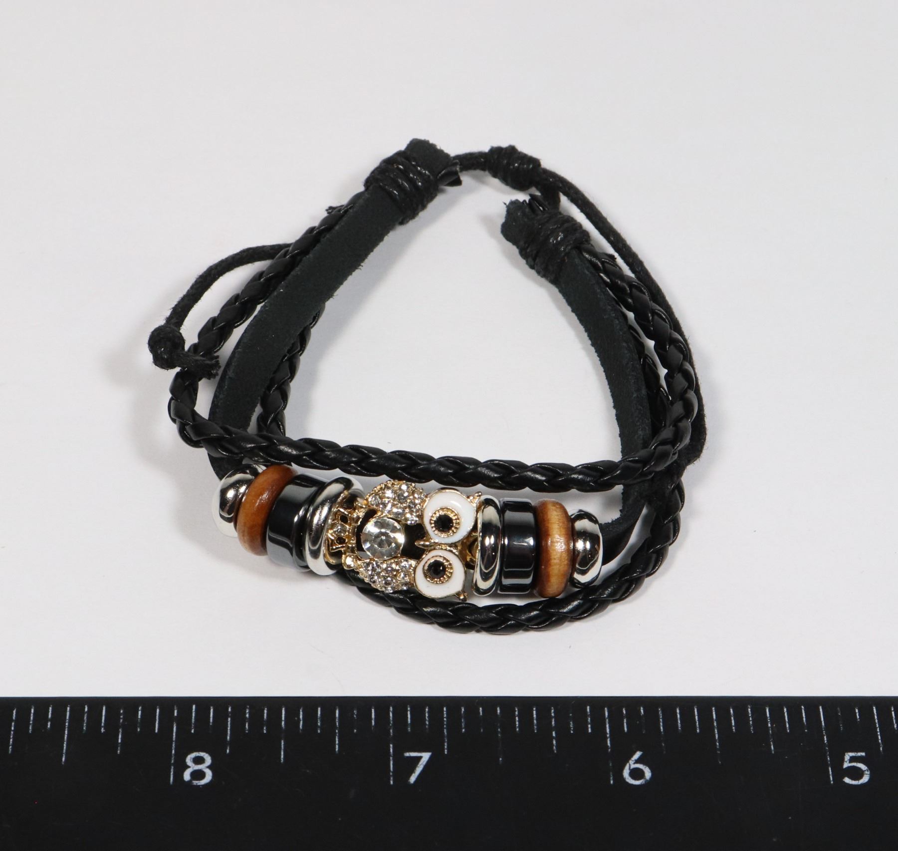 NEW FAUX LEATHER ZIRCONIA OWL ADJUSTABLE BRACELET