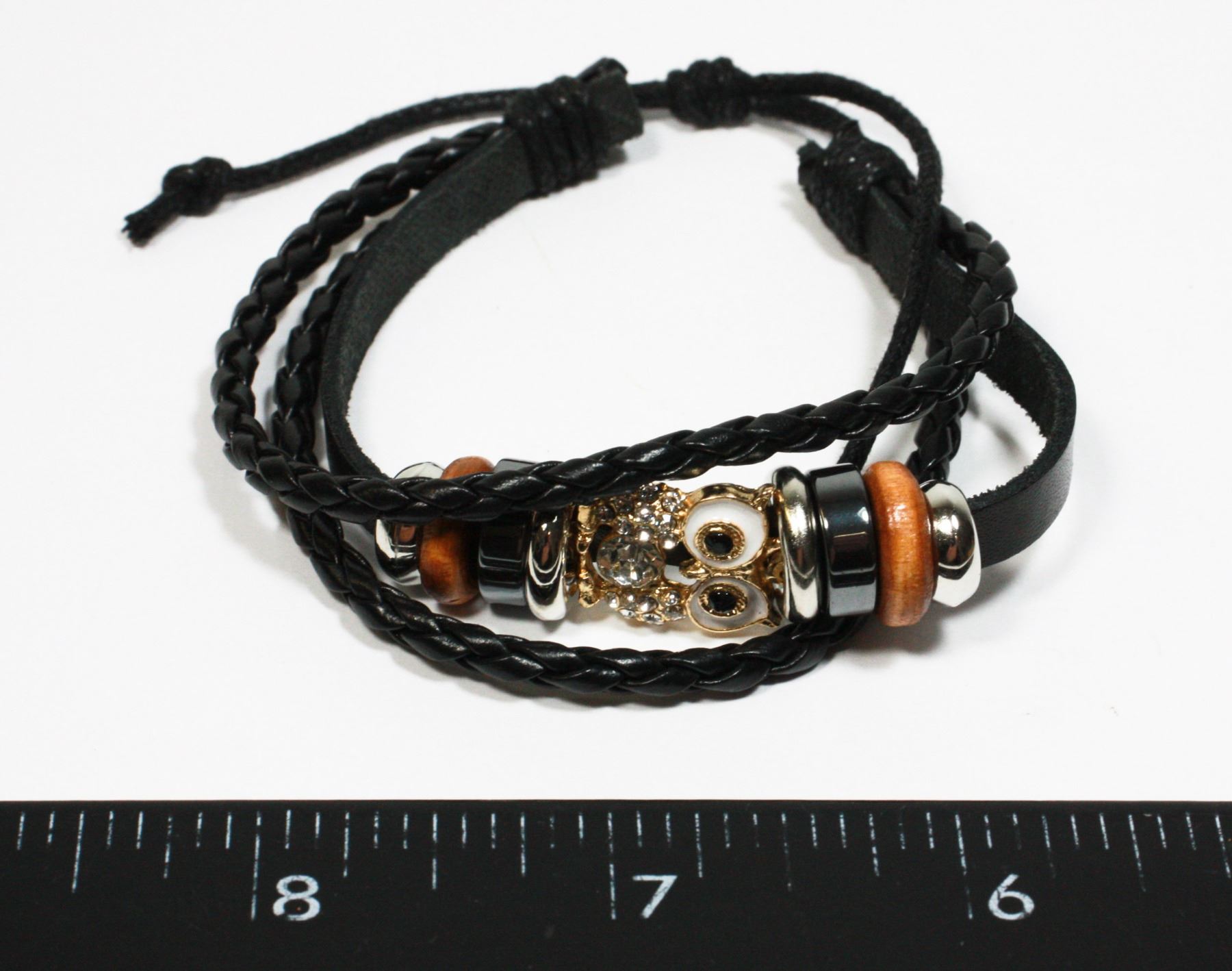 NEW FAUX LEATHER ZIRCONIA OWL ADJUSTABLE BRACELET