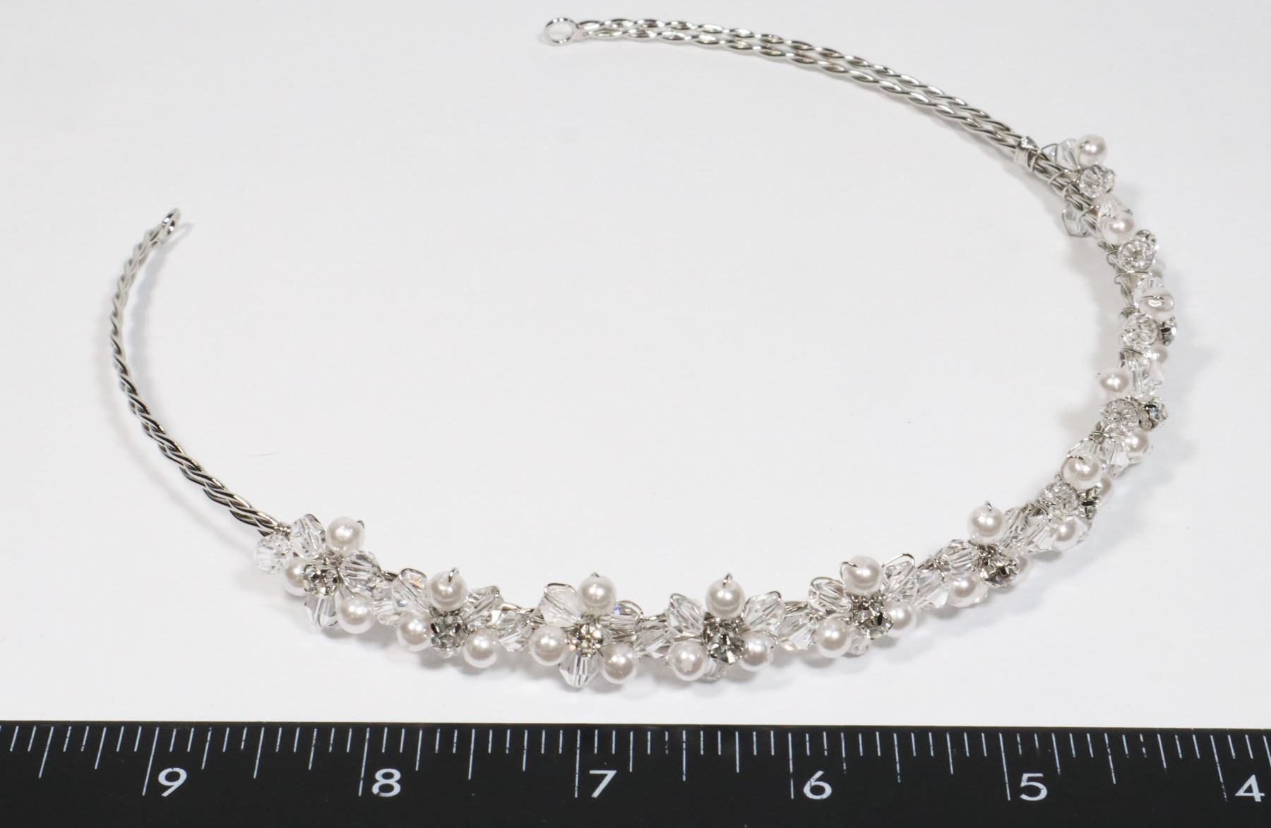 HEADBAND. BAND HAS A ROPE DESIGN. LOOP ON END TO ADD RIBBON (NOT INCLUDED) WEDDING HEADWEAR