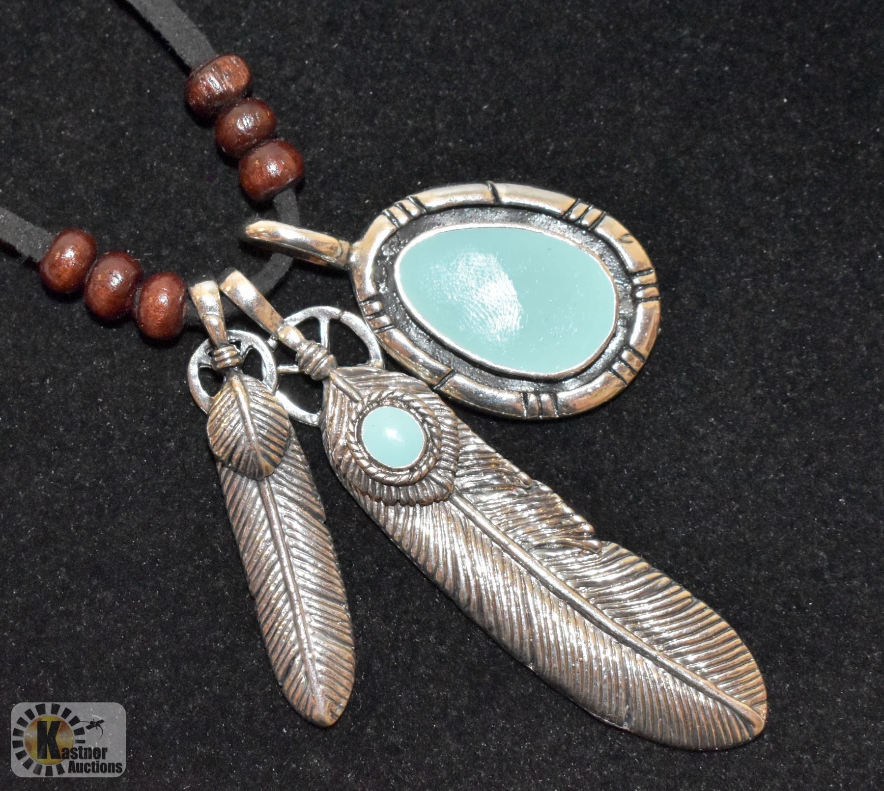 NEW FEATHERS NECKLACE WITH WOODEN BEADS