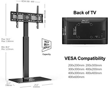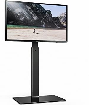 NEW FIT U EYES FLOOR TV STAND FOR 32 - 65", SWIVEL TEMPERED GLASS BASE, ADJUSTABLE UP TO 54.6", UP T