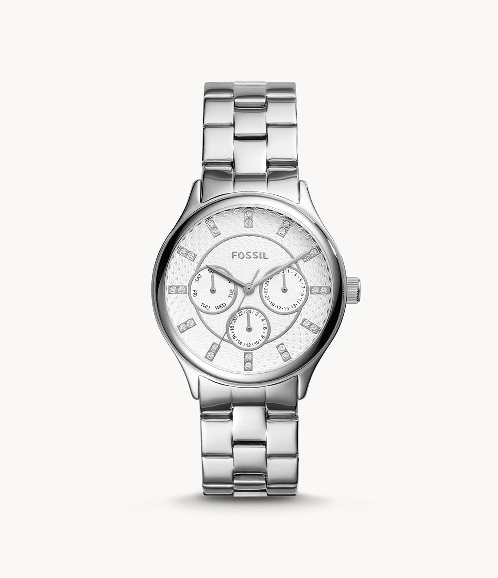 NEW FOSSIL 36MM TRIPLE DIAL SILVER-TONE MSRP $179