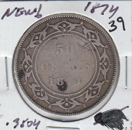 NEW FUOUNLAND 1874 SILVER 50 c CENTS