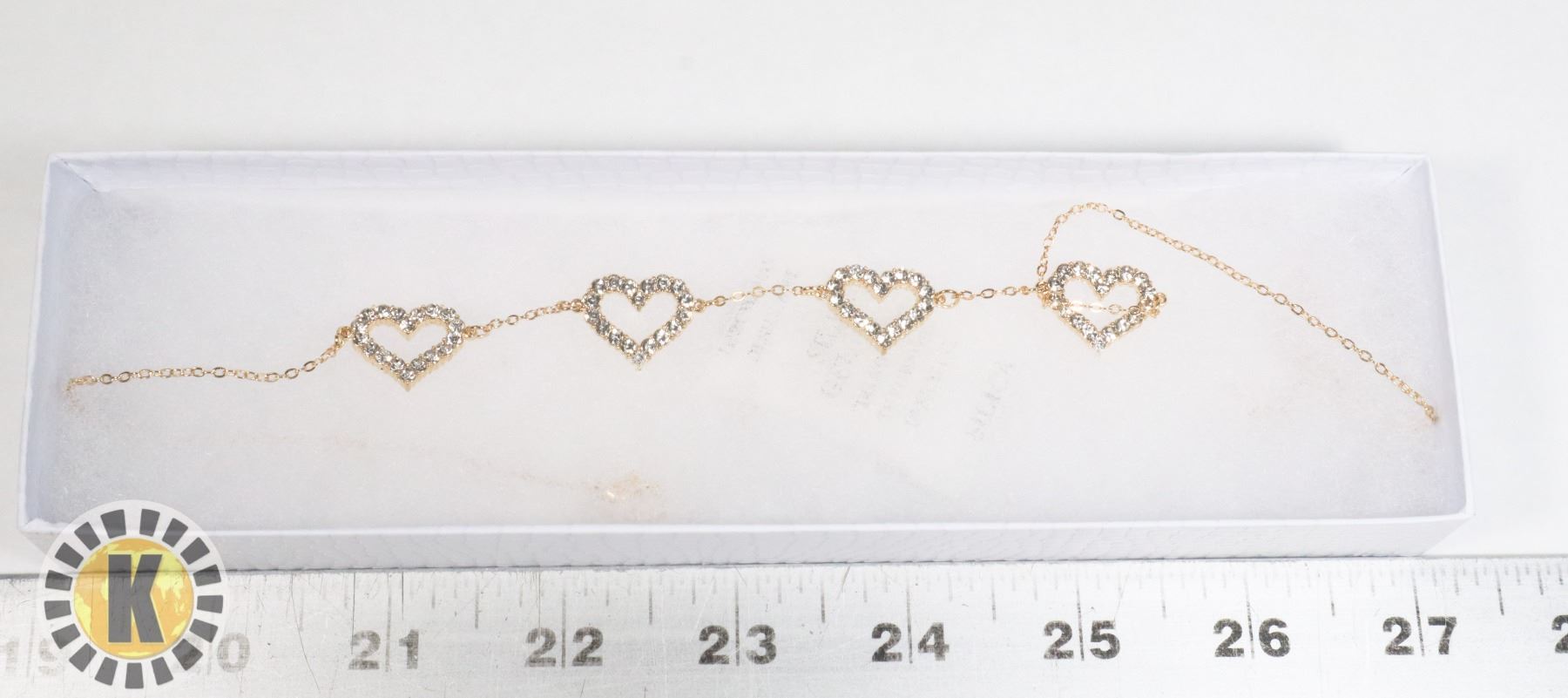 NEW FOUR HEART RHINESTONE GOLD TONE NECKLACE