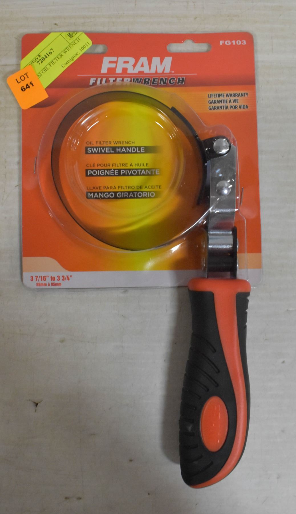 FITS 3-7/16 TO 3-3/4" FILTERS. HEAVY DUTY CHROM & SPRING STEEL CONSTRUCTION, NEW INSIDE GRIPPER BUMPS TO PREVENT SLIPPAGE. EASY TO USE IN HARD TO REACH PLACES. SWIVEL HANDLE. LIFETIME WARRANTY**ALL ITEMS MUST BE REMOVED BY 5PM MONDAY, SEPTEMBER 17, 2022. ALL REMAINING ITEMS WILL BE SUBJECT TO A $6.00 PER DAY STORAGE CHARGE. ANY ITEMS REMAINING AFTER MONDAY, SEPTEMBER 17, 2022 WILL BE CONSIDERED FORFEITED. NO REFUNDS WILL BE ISSUED FOR FORFEITED ITEMS. TO SCHEDULE A PICK UP APPOINTMENT CLICK HERE