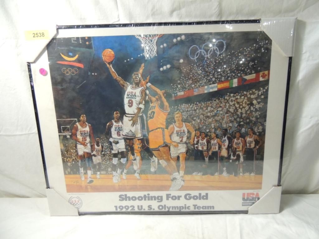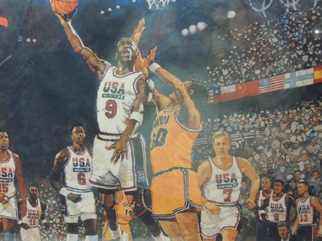 SHOOTING FOR GOLD 1992 US OLYMPIC TEAM. BASKETBALL TEAM WATERCOLOR PRINT. AS SHOWN. SEE PHOTO FOR MORE DETAILS.